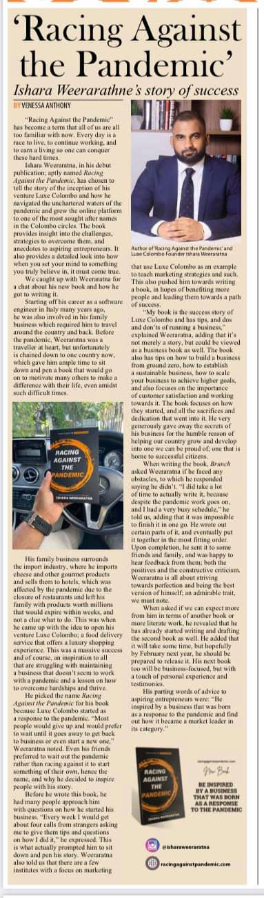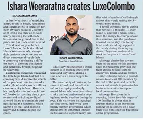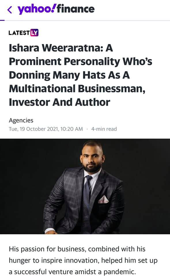 Ishara Weeraratna is an entrepreneur and author. He has founded multiple business ventures across Sri Lanka, Italy, Dubai, Oman and Singapore. He founded Luxe Colombo in 2020 as a response to the pandemic and is also the director and CEO of Il Mondo Del Gusto SRL in Italy, Billion Corp in Singapore and co-founder of Via Torino Italian Restaurant.